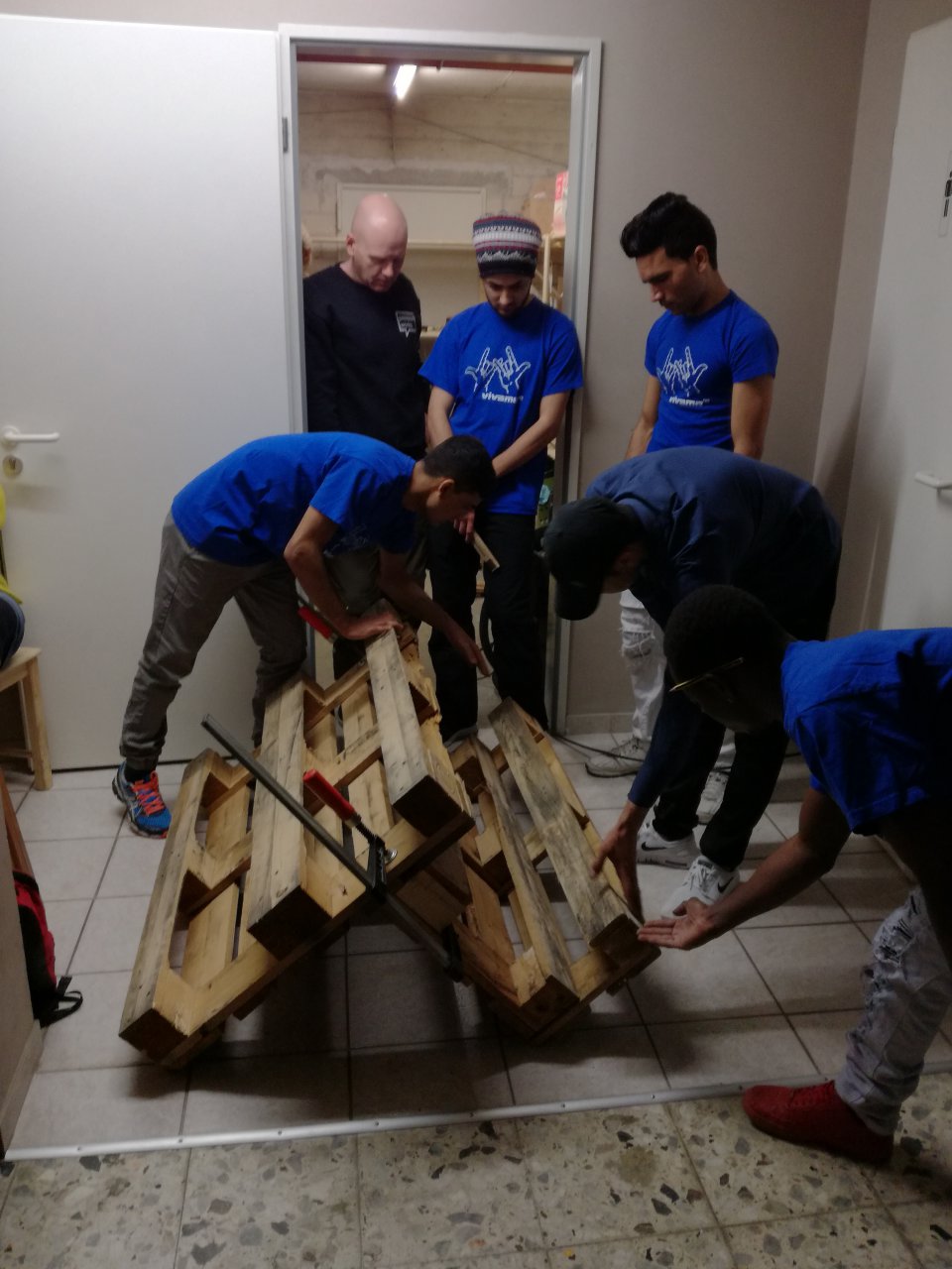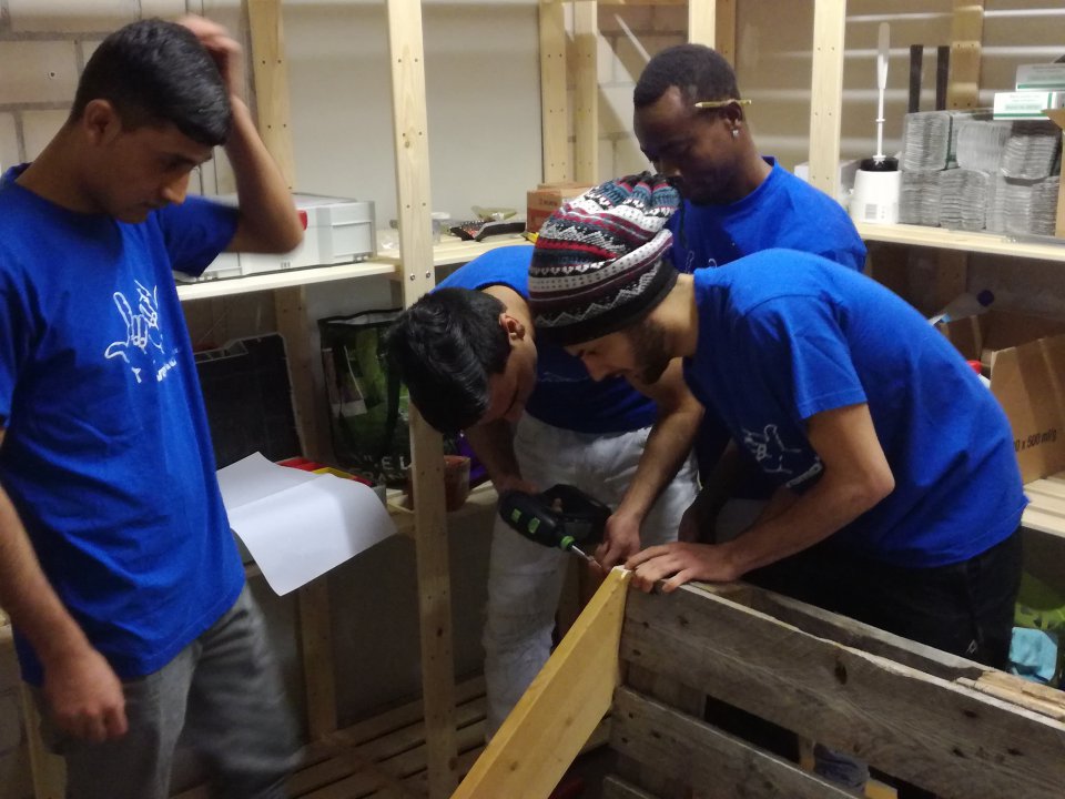 Im Rahmen des „Möbelbauprojektes“ von MONDO Herne wurden im Januar 2017 mit einer Gruppe von 5 Jugendlichen zwei schöne Bänke aus Europaletten für den Außenbereich von MONDO Herne gebaut. MONDO Herne betreut zurzeit 35 unbegleitete minderjährige Flüchtlinge aus dem Iran, Afghanistan, Syrien, Irak, Marokko, Algerien, Guinea, Eritrea, Benin und Albanien. Die Jugendlichen wohnen in von der Ev. Jugendhilfe Bochum angemieteten Trainingswohnungen und werden auf das eigenständige Leben in Deutschland vorbereitet. Im Rahmen der Verselbstständigung bieten wir den Jugendlichen verschiedene Projekte an, in denen ihnen die Möglichkeit geboten wird, verschiedene lebenspraktische Fertigkeiten zu erlernen und umzusetzen.