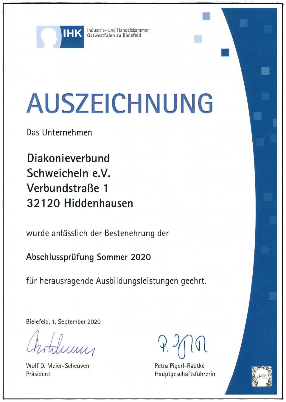Ausgezeichnete Ausbildung