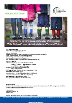 Erzieher*in in für unsere stationäre Wohngruppe „Villa Südpark“ zum nächstmöglichen Termin | Vollzeit